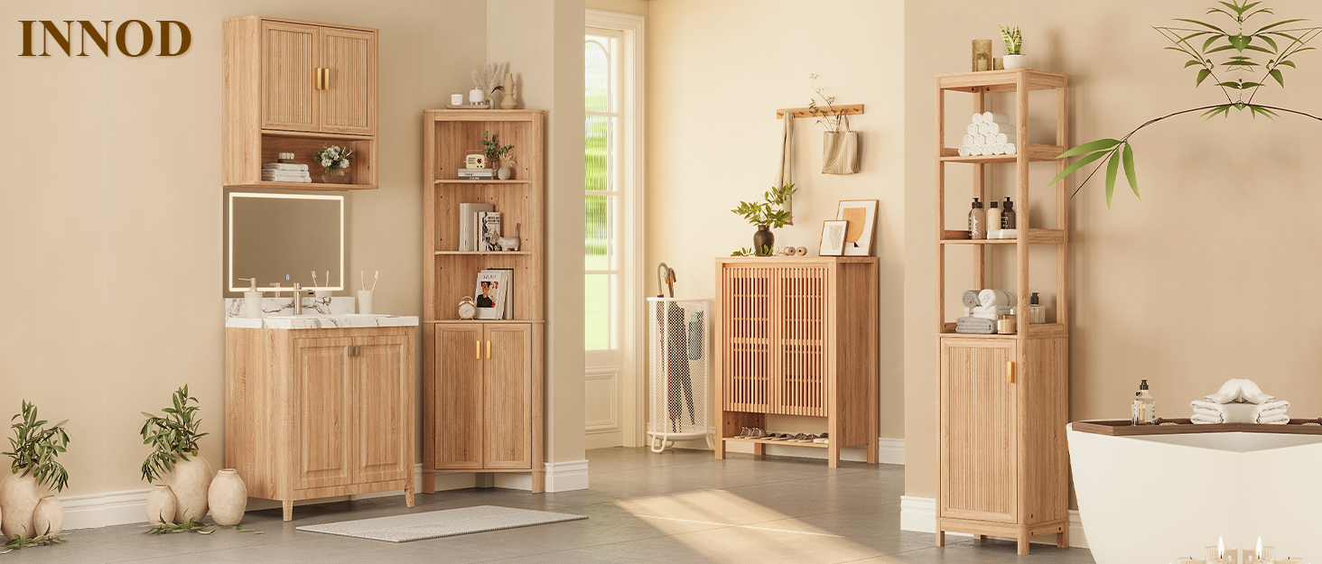 Bathroom Storage Cabinet, Medicine Cabinet with Adjustable Wood Shelf & Doors, Over The Toilet Storage Cabinet for Laundry Room & Kitchen & Living Room (Natural Oak)