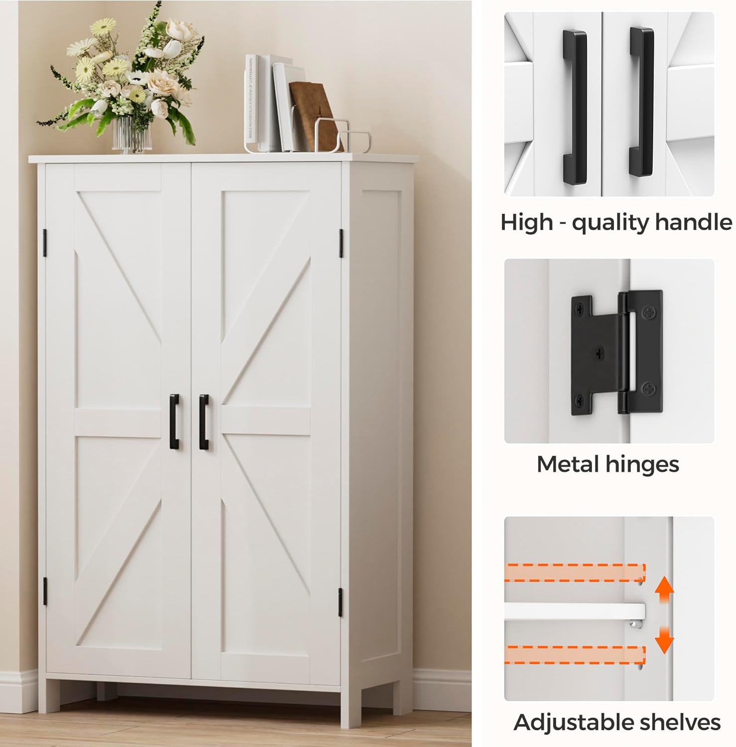 Farmhouse Bathroom Cabinet with Adjustable Shelves, Free-Standing Storage Cabinet with Barn Doors, for Kitchen, Living Room, Dining Room, Entryway, White
