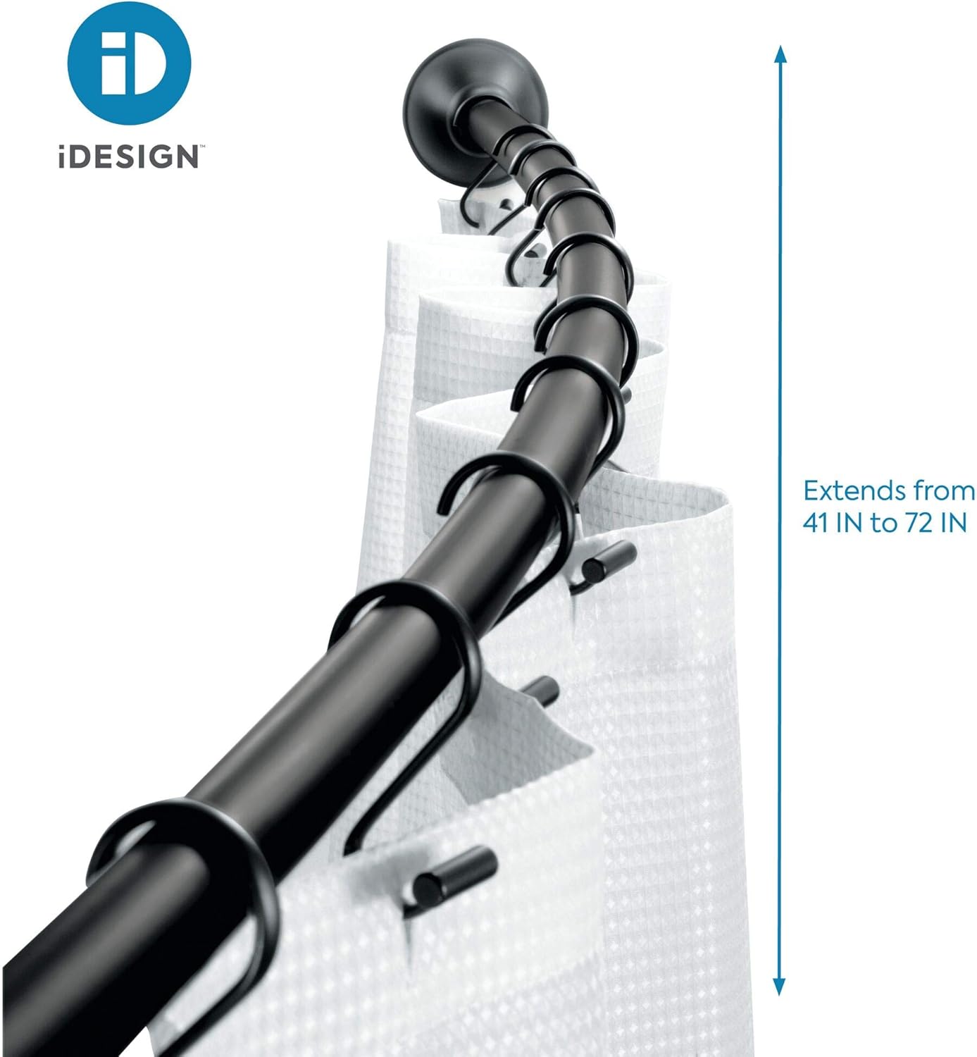 iDesign Curved Metal Shower Curtain Rod, Adjustable Customizable Curtain Rod for Bathtub, Stall, Closet, Doorway, 41-72 Inches, Matte Black,79077