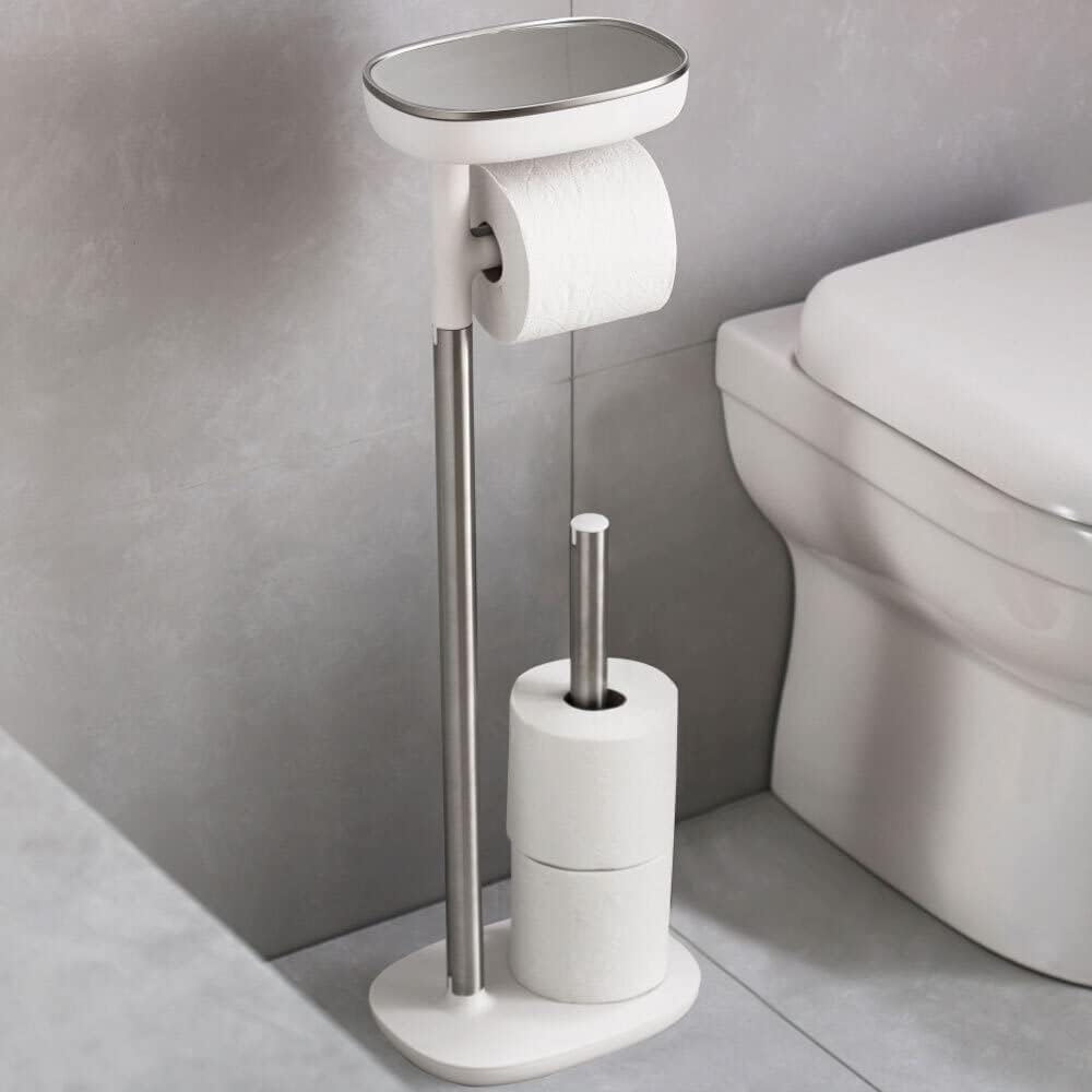 Joseph Joseph 70518 EasyStore Butler Toilet Paper Holder Stand and Spare Roll Storage with Shelf and Drawer, Stainless Steel