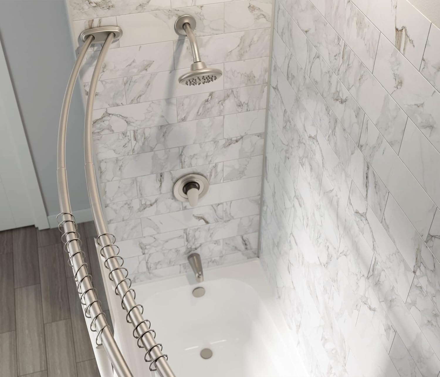 Moen Matte Black Adjustable 57 to 60-Inch Double Curved Shower Rod, Permanent Wall Mounted Shower Curtain Rod, DN2141BL