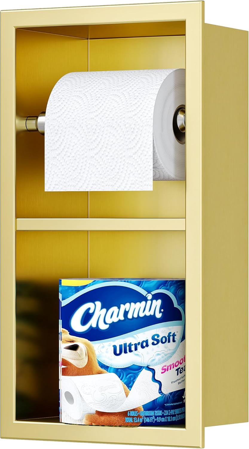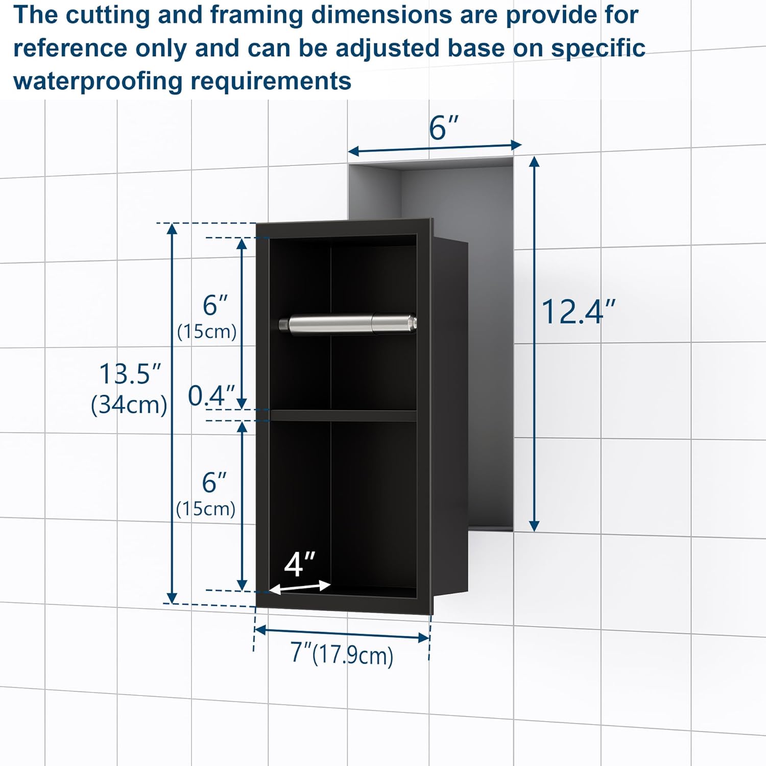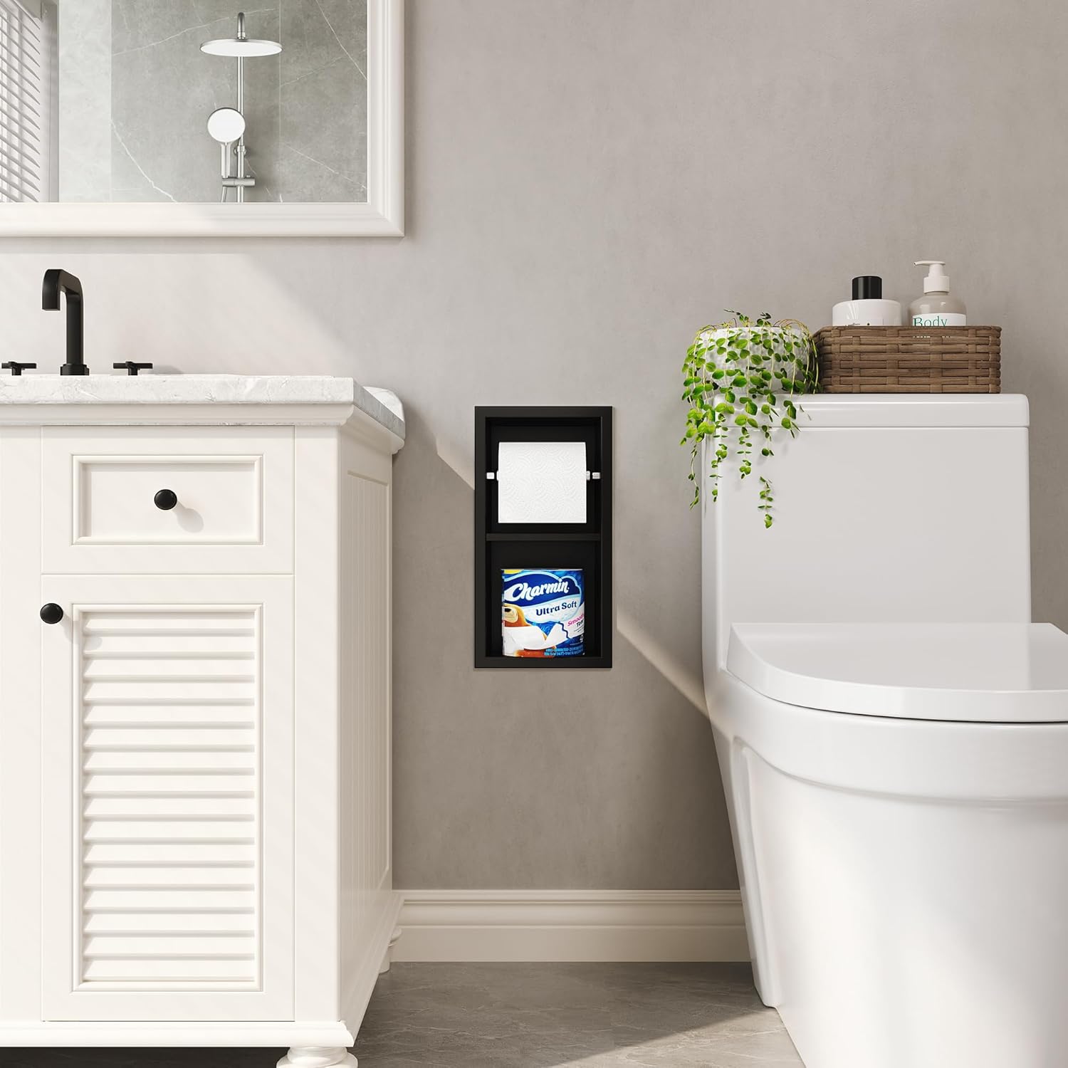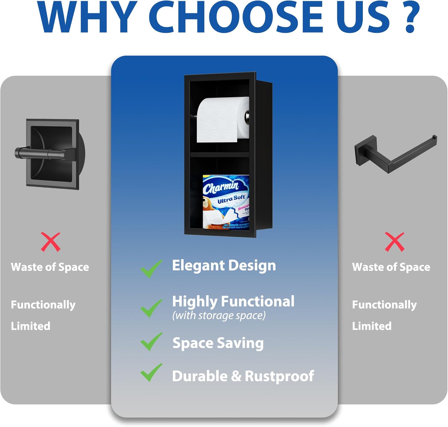 Recessed Toilet Paper Holder, 304 Stainless Steel Bathroom Toilet Paper Holder with Storage, in Wall Tissue Toilet Roll Holder, Matte Black