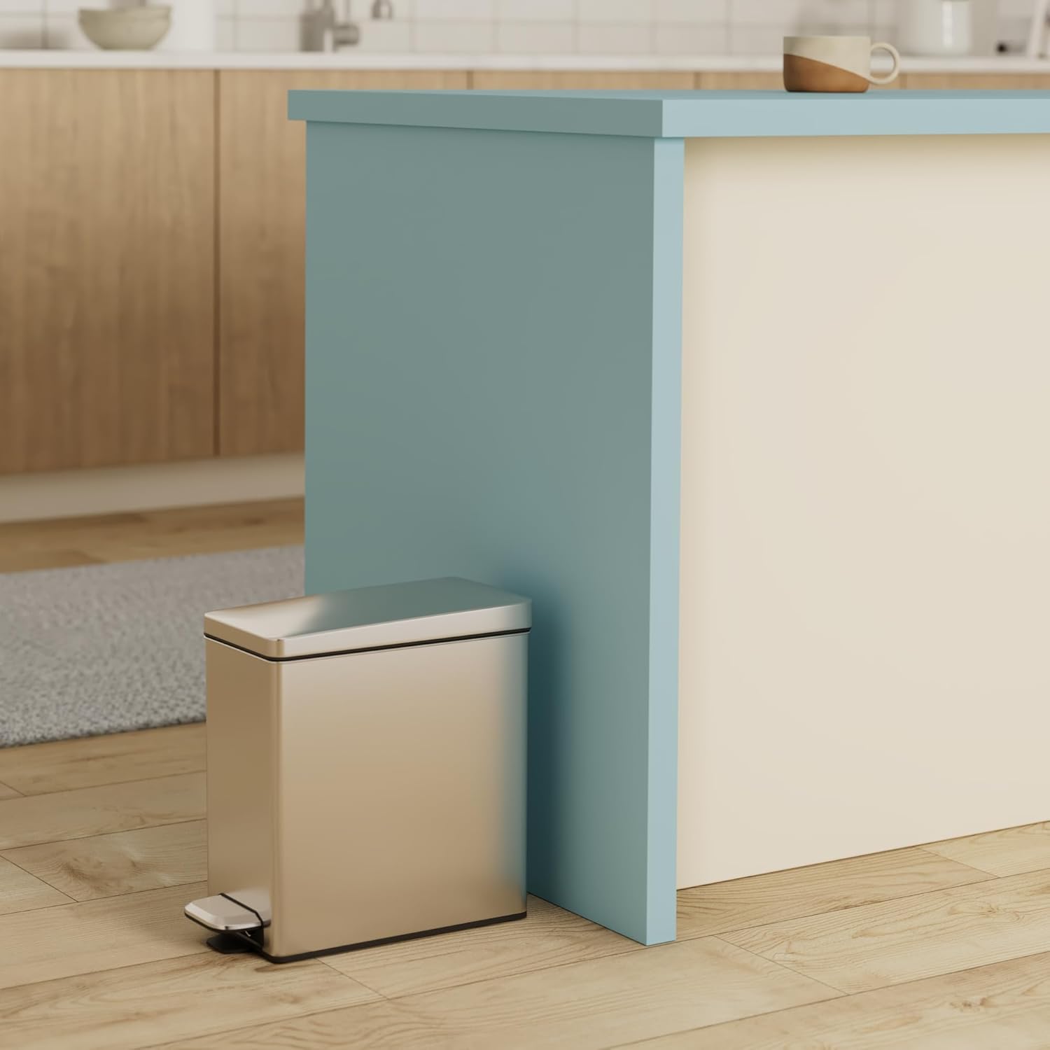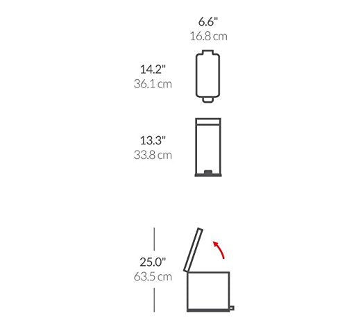 The simplehuman profile step can has a slim profile shape that makes it a great fit in a bathroom or under a desk. It has a durable steel pedal that is designed to last, and our patented lid shox technology ensures a smooth, silent close every time. Although it has a removable inner bucket that is grocery bag compatible, our code R custom fit liner fits this can perfectly — no bunching or slipping for a cleaner trash experience.