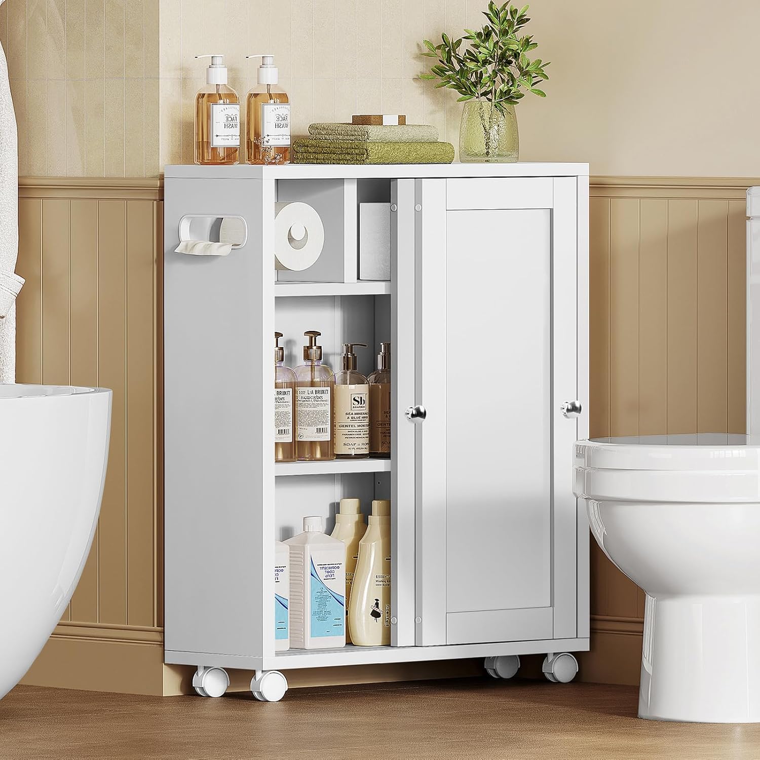 TEENFON 67" Tall Bathroom Cabinet with Adjustable Shelves and Doors, Narrow Bathroom Storage Cabinet for Small Space, Living Room, Entryway, Kitchen, White