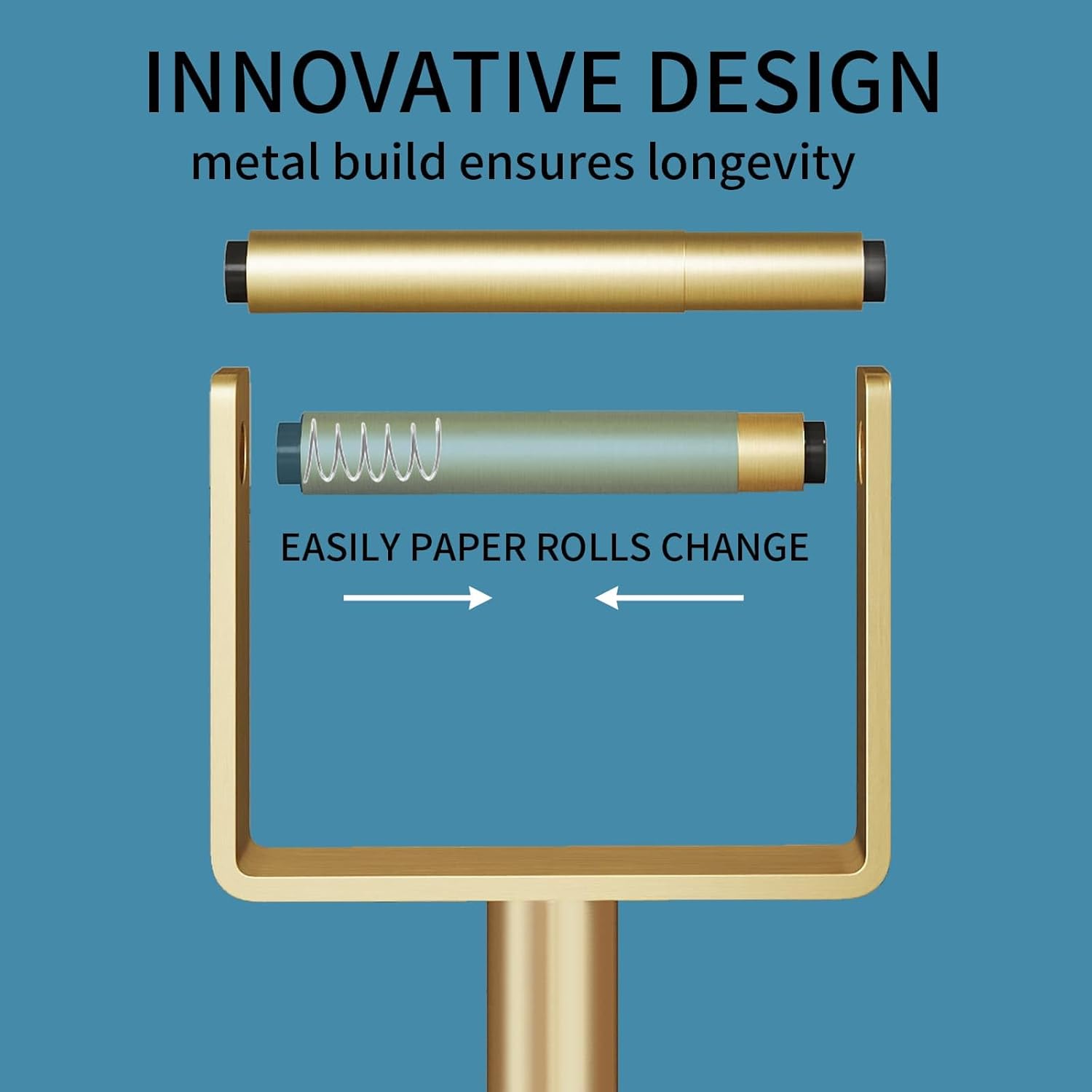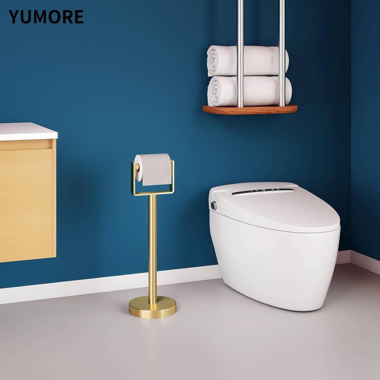 YUMORE Toilet Paper Holder Free Standing, Stainless Steel Toilet Paper Stand, Weighted Base Floor Tissue Roll Holder for Bathroom,Gold 200UP